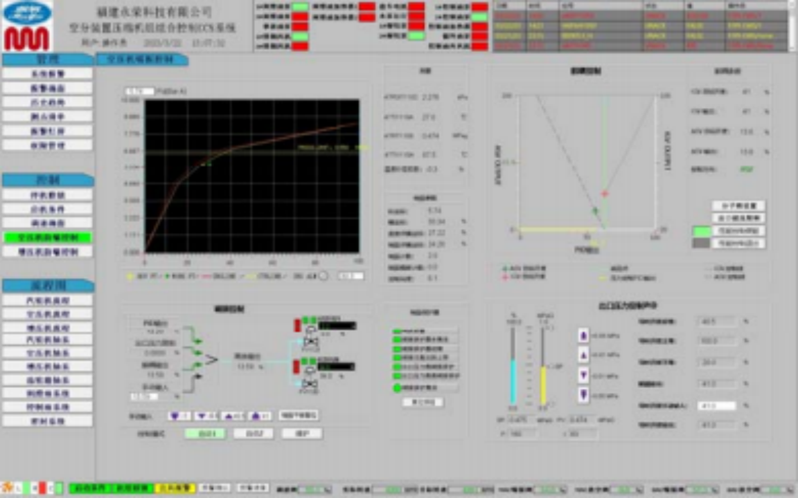 系統(tǒng)經(jīng)過調(diào)試,試車,防喘振實(shí)測(cè),開車。達(dá)到西門子的控制要求。所有PID回路投自動(dòng)控制,性 能控制用戶選擇投用空壓機(jī)性能控制??刂破椒€(wěn),到達(dá)預(yù)期控制目標(biāo)。