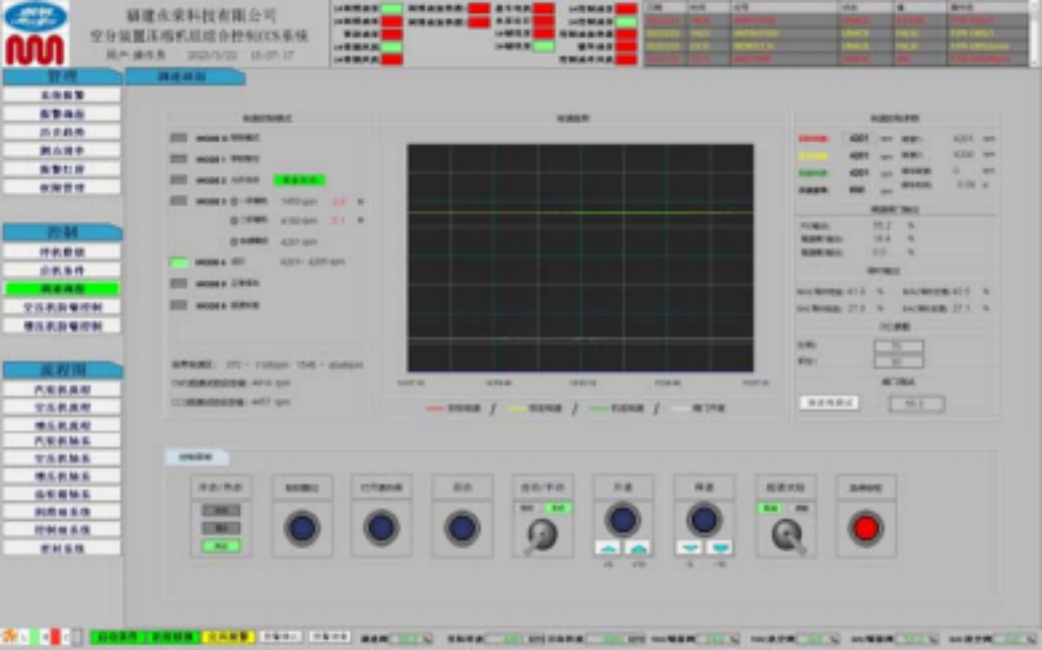 2 、機(jī)組是汽輪機(jī)一拖二驅(qū)動(dòng),調(diào)速機(jī)構(gòu)國(guó)內(nèi)較少使用。機(jī)組配置高壓控制油站, WEST模塊,喘振保 護(hù)器??刂葡到y(tǒng)需要實(shí)現(xiàn)速關(guān)閥自動(dòng)測(cè)試程序,調(diào)速閥部分行程微動(dòng)測(cè)試程序。