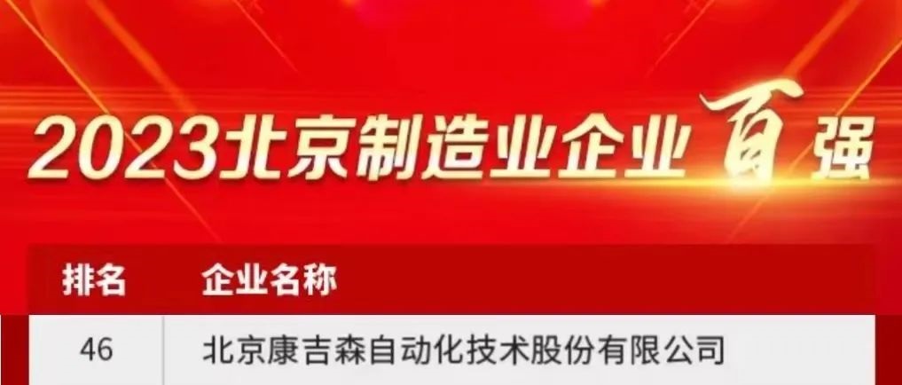 近日,北京企業(yè)聯(lián)合會、北京市企業(yè)家協(xié)會共同發(fā)布2023北京企業(yè)百強榜單。繼陸續(xù)上榜2021年“北京民營企業(yè)社會責任百強”、2022年“北京民營企業(yè)中小百強”后,康吉森榮登“2023北京制造業(yè)百強”榜單。