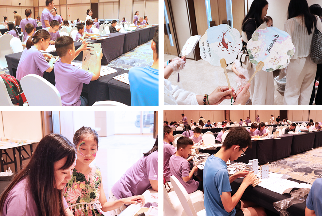 次日活動以創(chuàng)意手作為主題,設(shè)置了非遺漆扇制作、益智拼圖、創(chuàng)意積木搭建、浮雕涂色藝術(shù)和DIY臺燈等豐富多彩的工作坊。這些活動不僅培養(yǎng)了孩子們的動手能力,更在協(xié)作中增進了親子情感交流。